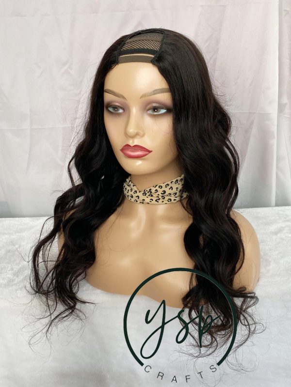 Black Wavy U Part Human Hair Wig (20 Inches)