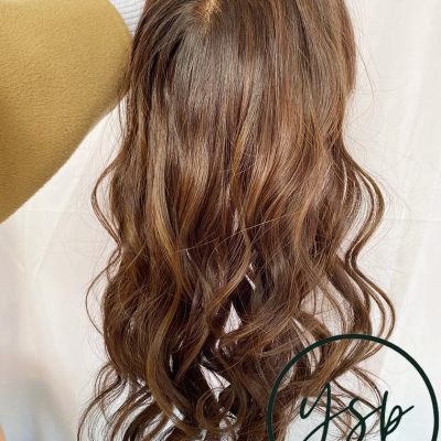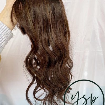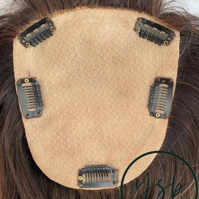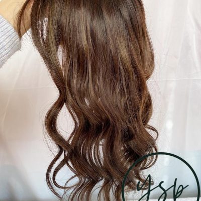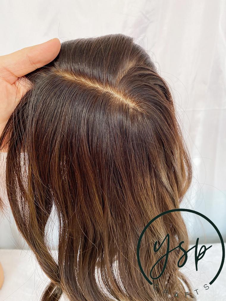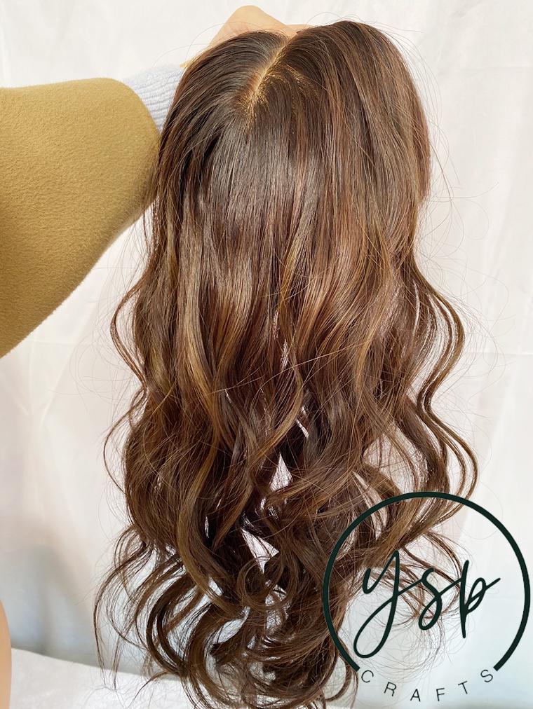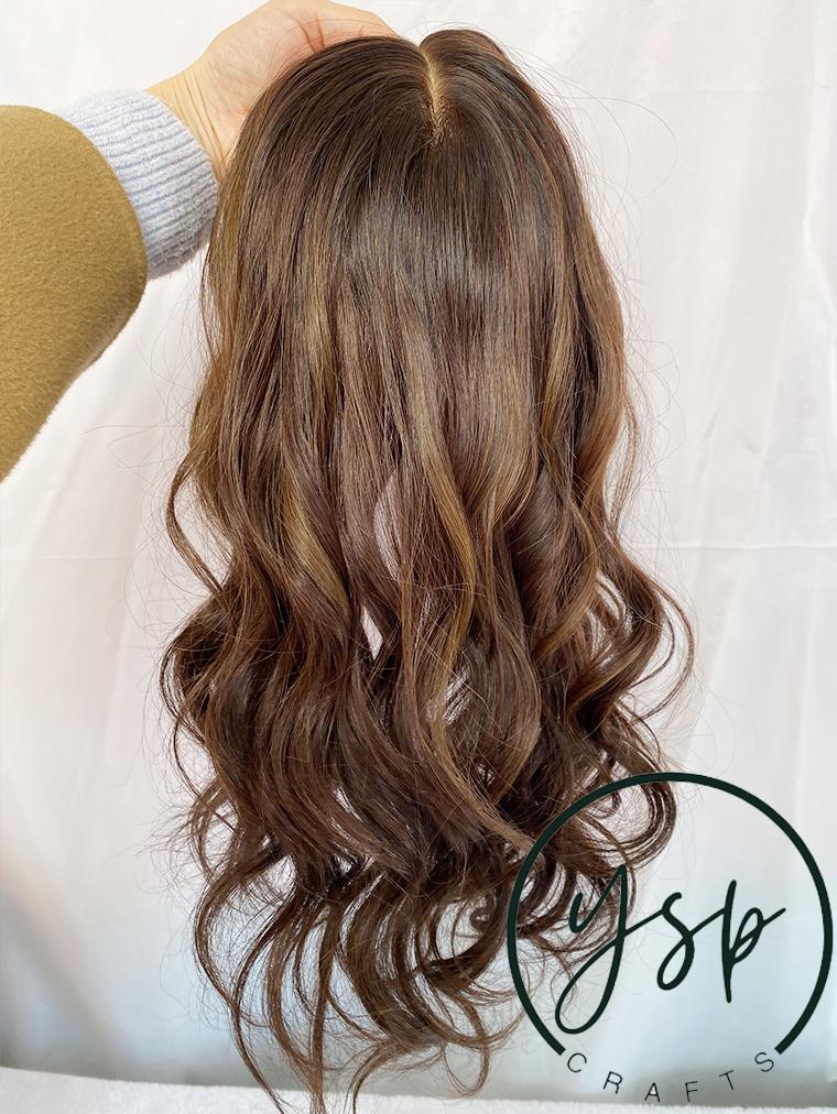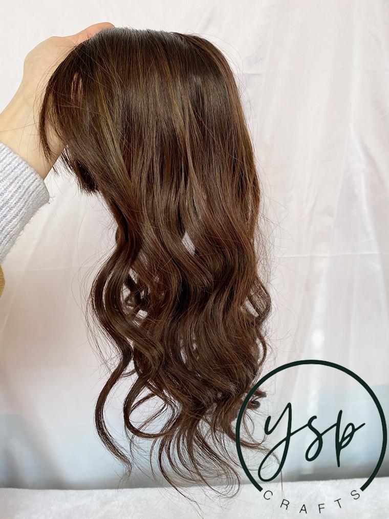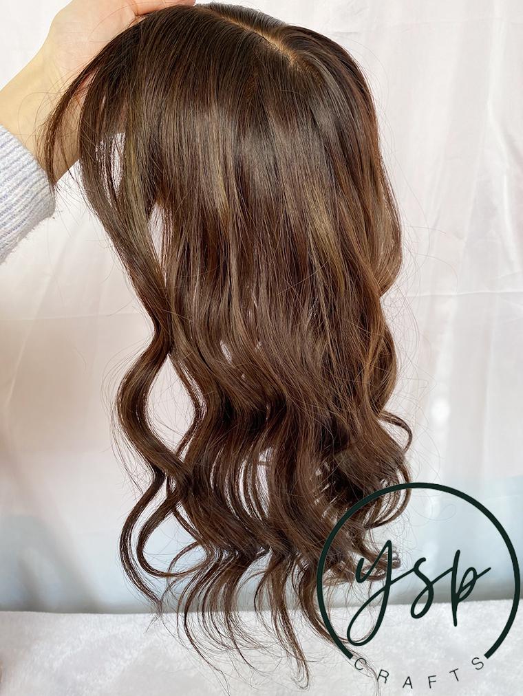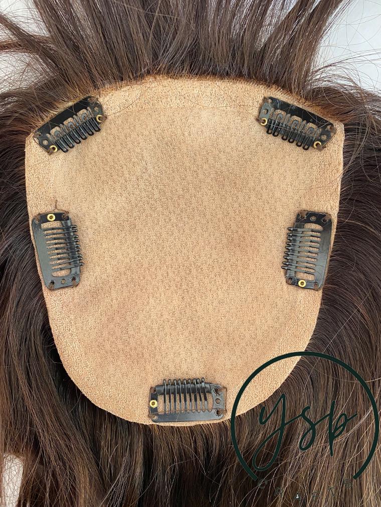 5×6 Silk Top Human Hair Topper with bangs | Brown with highlights Hairpiece