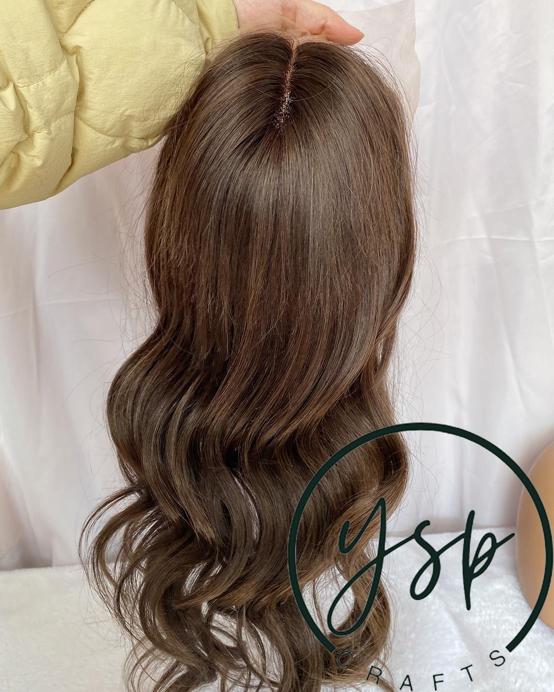 8×8 Lace Front Brown Human Hair Topper | Wavy Hairpiece for Thinning Hair