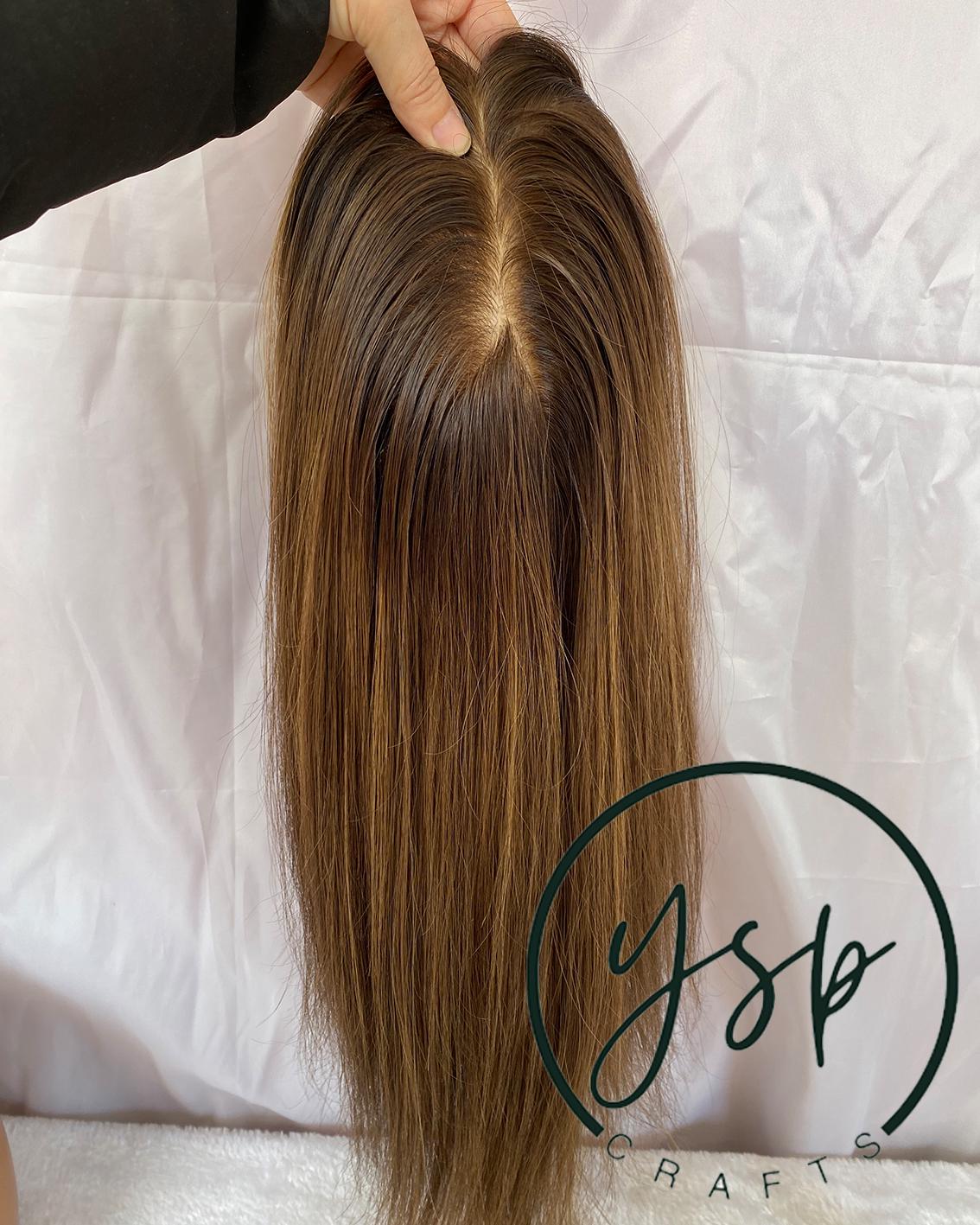Balayage Human Hair Topper, 5×6 Silk Base, 16 inch