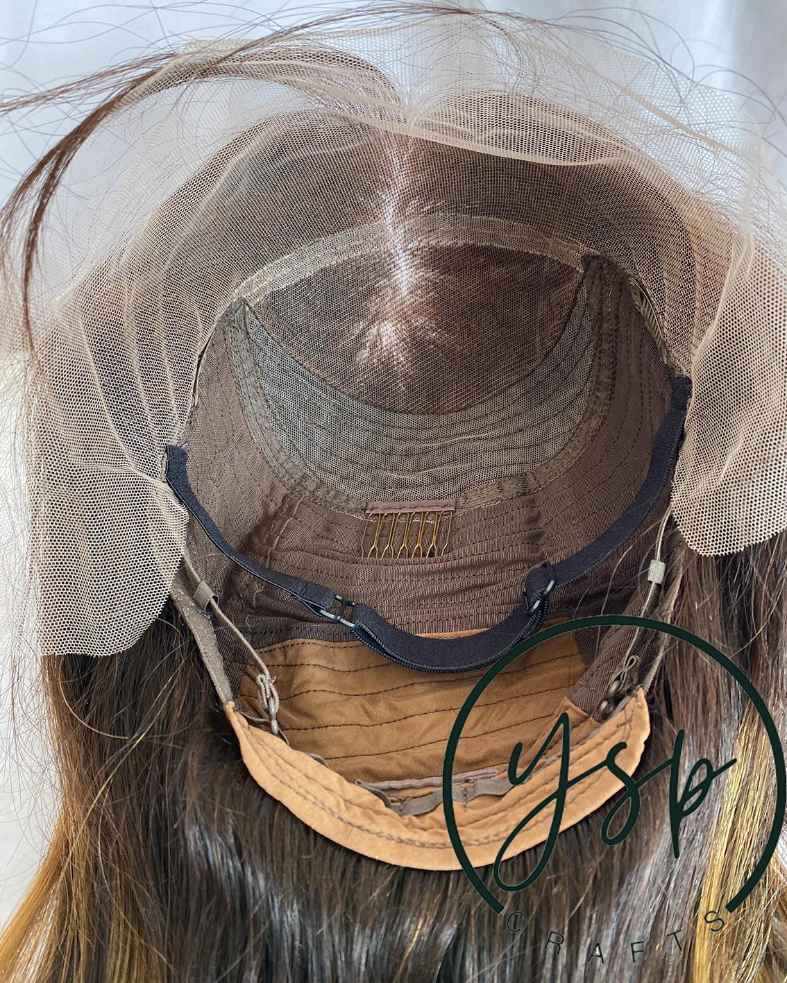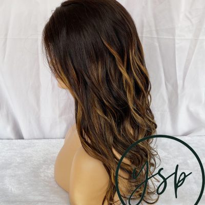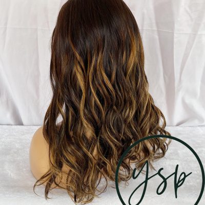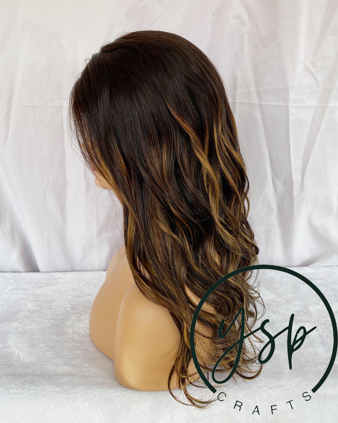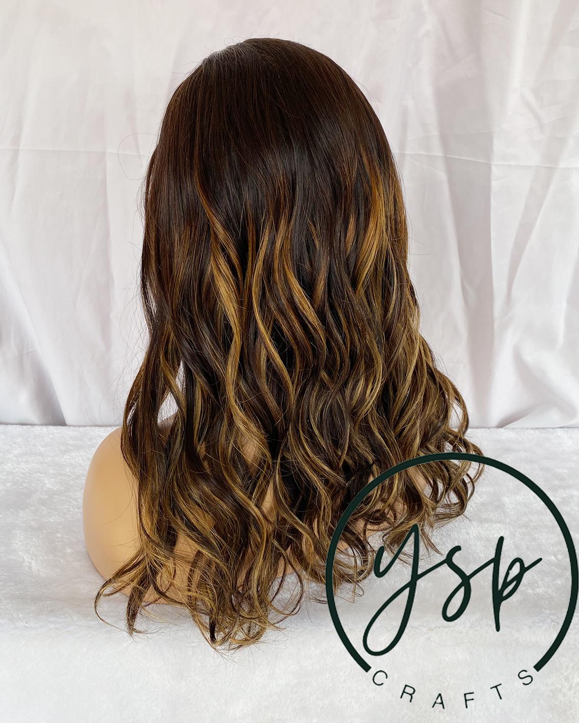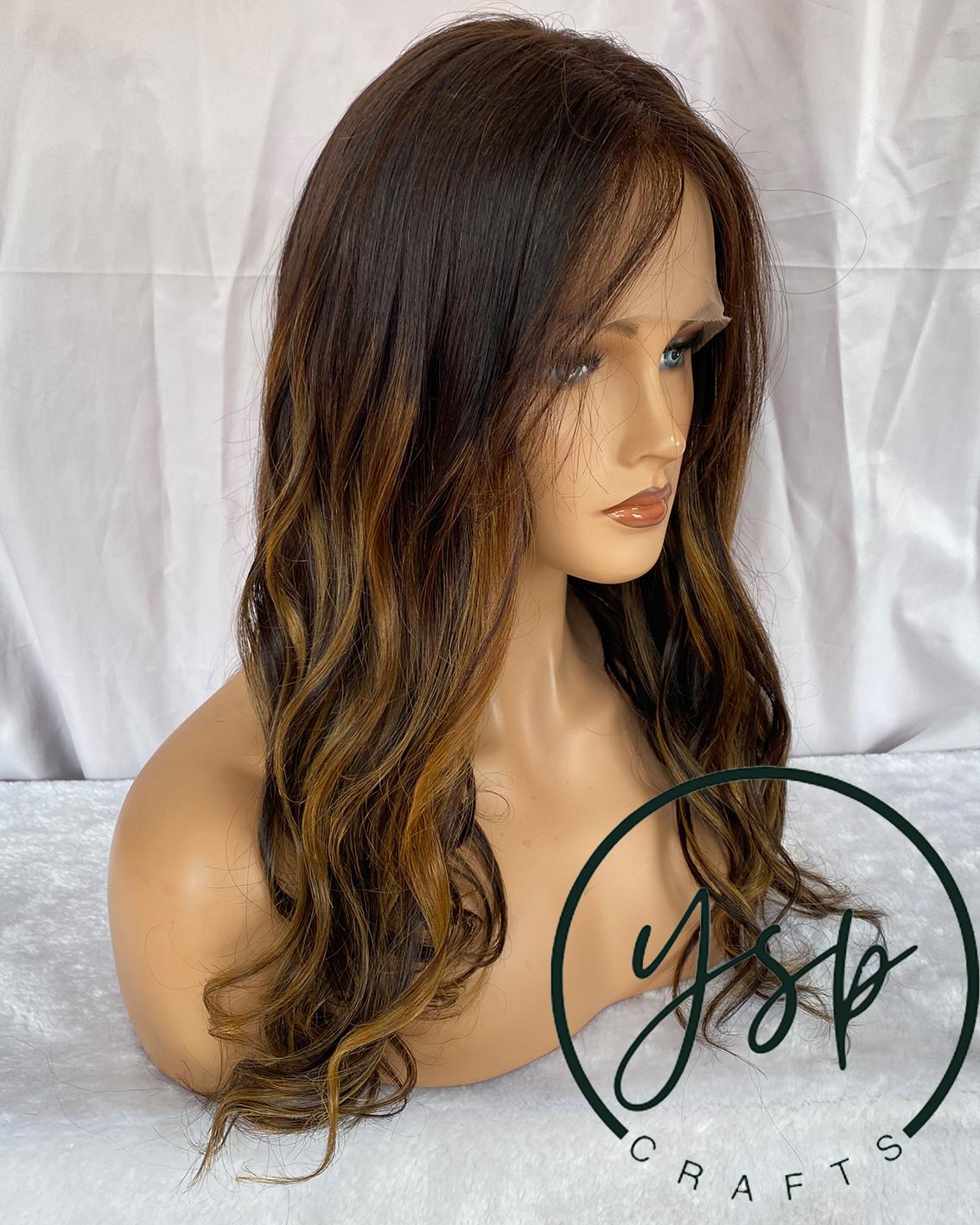 Brown Balayage Human Hair Wig 100% Human Hair Lace Front Wig | Dark Brown with Caramel Highlights