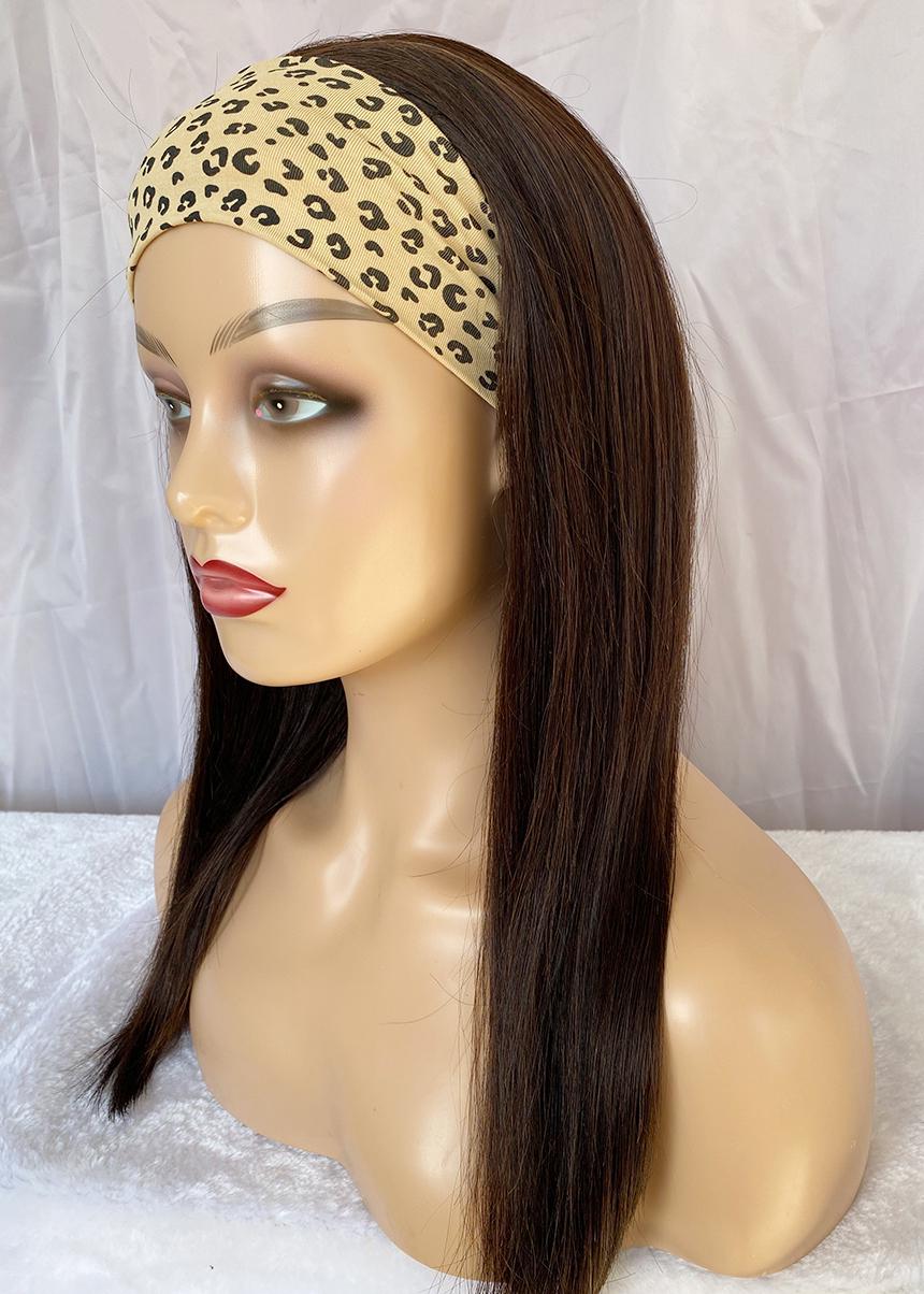 Dark Brown Human Hair 3/4 Wig: Active Bandfall Style
