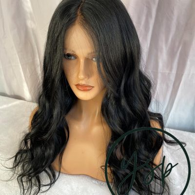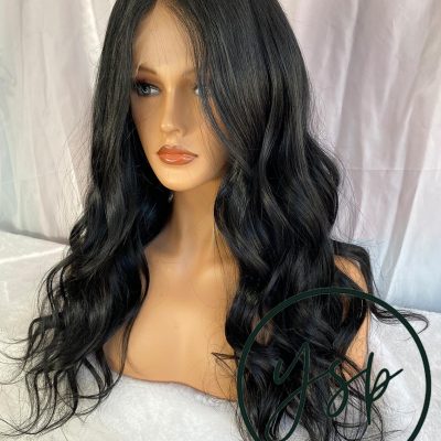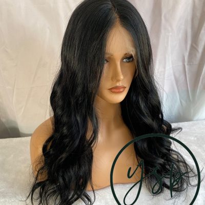 Jet Black Human Hair Silk Top Lace Front Wig, Wavy Glueless Wig