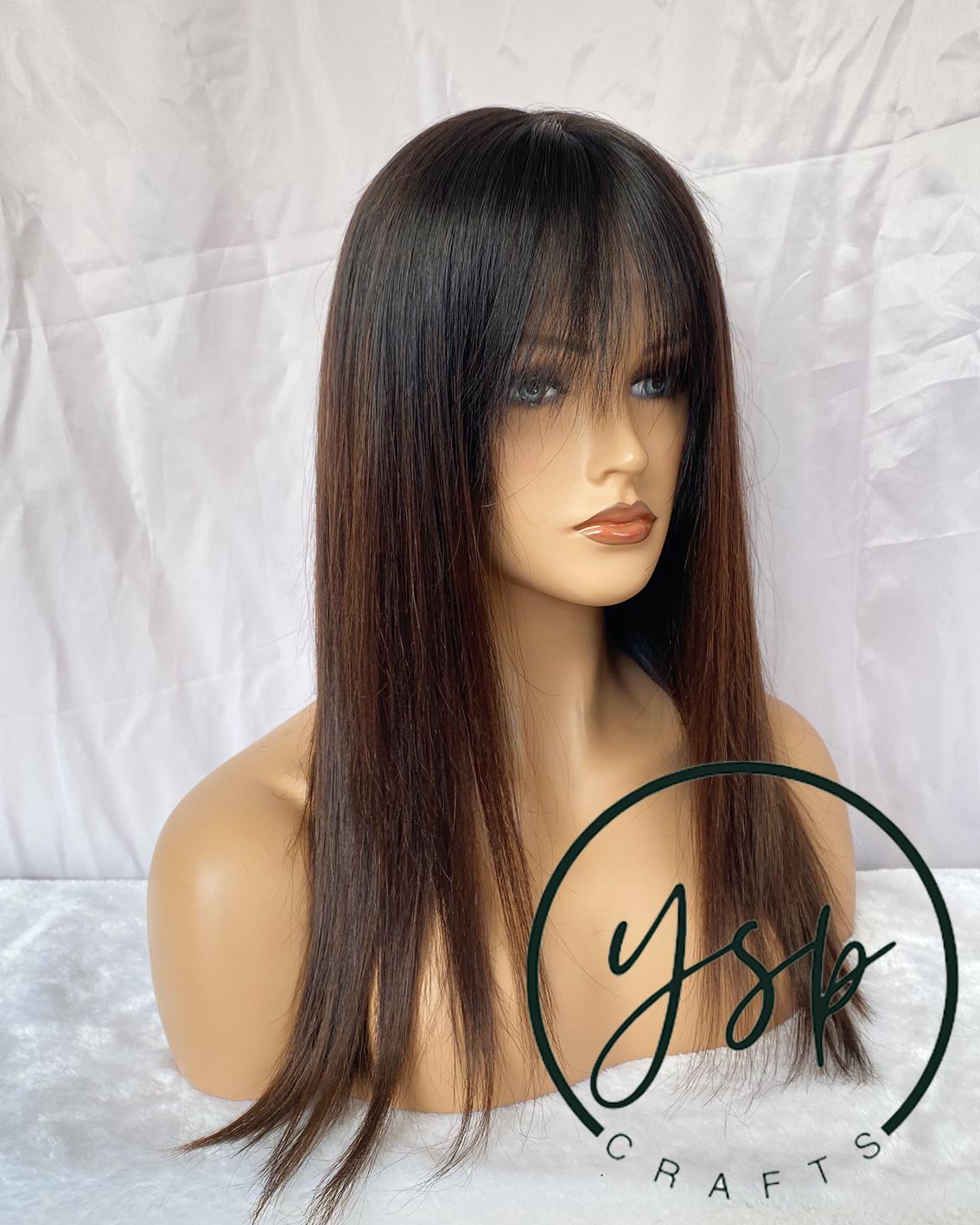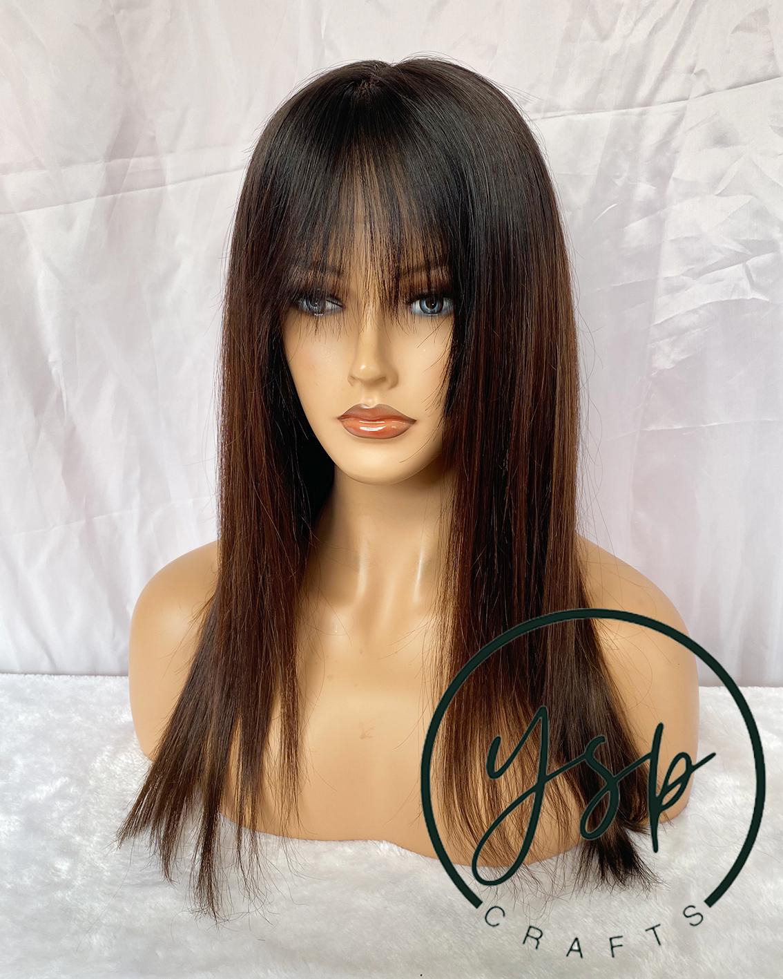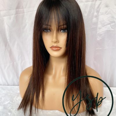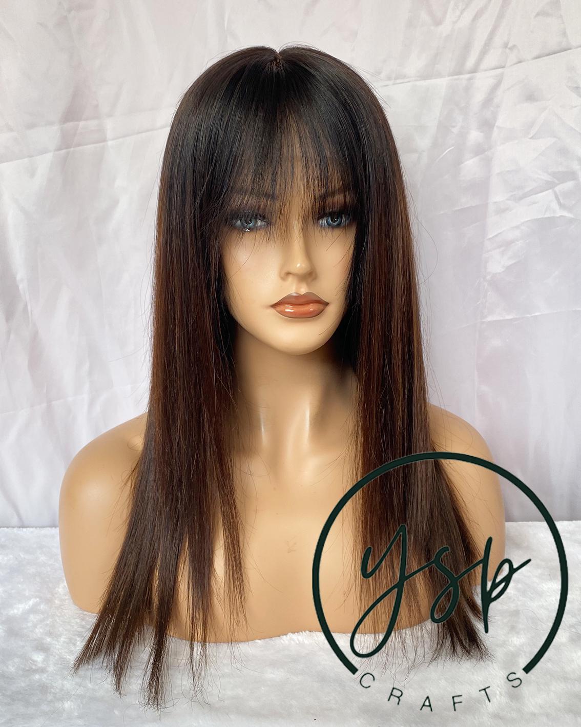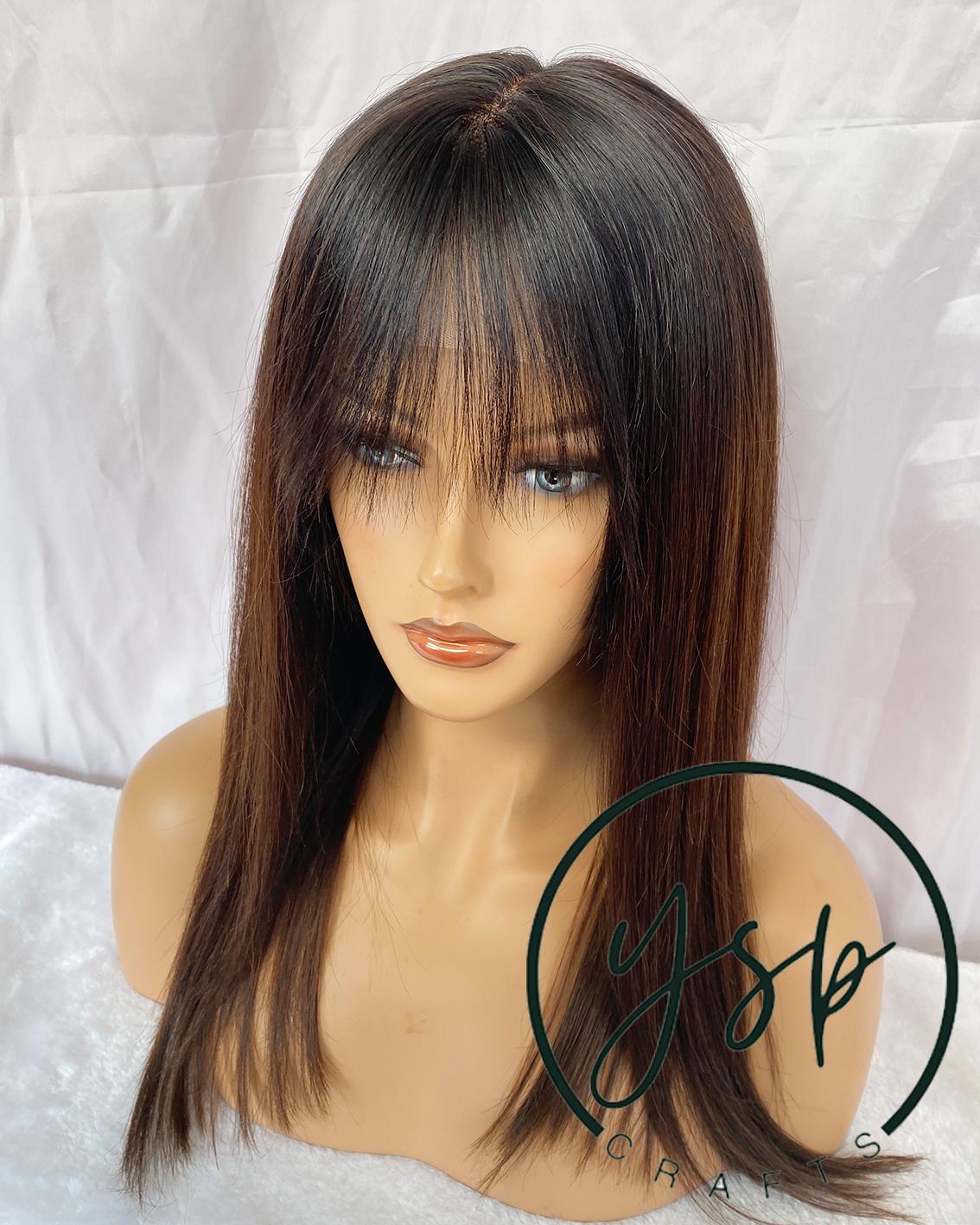 Ombre Brown 13×6 Lace Front Human Hair Wig with Bangs Straight Hair Wigs