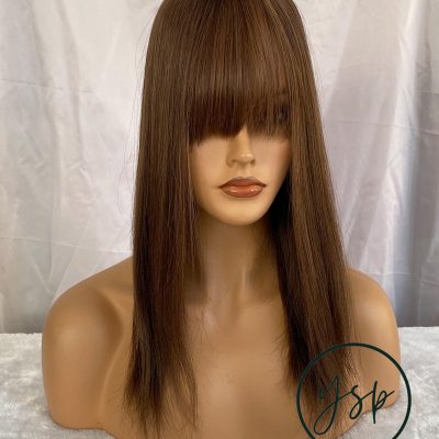 Silk Top Human Hair Wig with Bangs | Light Brown Lace Front